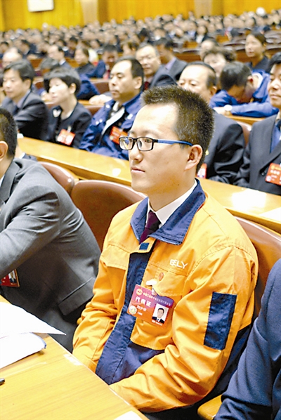吉利汽车宝鸡制造基地工段长刘少华代表的工装是橘色和蓝色相间,陕西延川县创新机械制造公司技术员张爱芳代表的工装色调为深灰。虽然工种不同,但是他们都不约而同地感到,工人的职业身份和劳动价值不断被认可,工人的地位越来越受到尊重,平时穿着工装就有一种自豪感,能够穿着工装走进人民大会堂更是一种荣耀。
