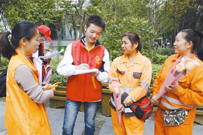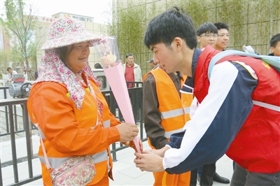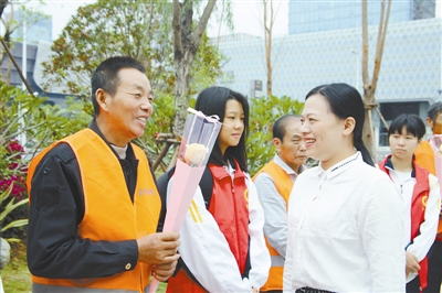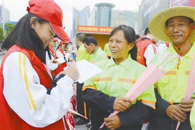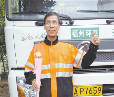 10月21日,福州市200多名环卫工人收到了一份“温暖惊喜”。福建省总工会、省清洗保洁行业协会等单位爱心志愿者,分成4路到街头、垃圾转运站、综合处理场,向工作在一线的环卫工人献上黄玫瑰,并送上大米和油等慰问品。在福州市红庙岭垃圾综合处理场,全国劳模、重型机械操作手郑贞良感慨道:“我23年前成为了一名环卫工,度过了23届环卫工人节。谢谢你们记挂我们!”