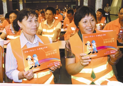 2012年,福州市总工会开展“关爱环卫工人十年行动计划”,为环卫工人赠送免费体检卡