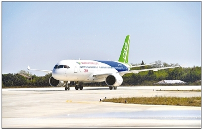 10月27日,C919大型客机第二架机在南昌瑶湖机场跑道滑行。