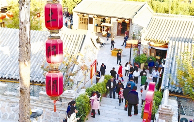 10月27日,游客在石家庄市鹿泉区土门关驿道小镇游览。