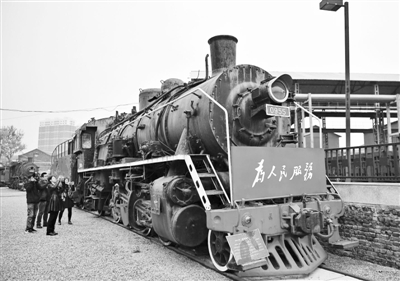 10月25日,游客在唐山市开滦国家矿山公园蒸汽机车观光园参观。