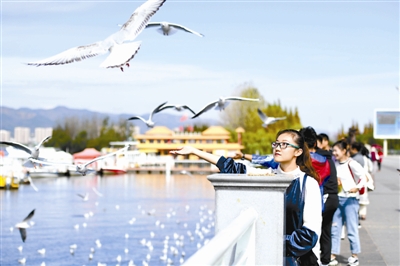 近日,数千只红嘴鸥飞抵云南昆明,这是生长在西伯利亚等地的红嘴鸥连续34年来到昆明越冬。自从1985年红嘴鸥首次到昆明过冬以来,每年10月底至11月初,这些“小精灵”都会不远万里飞来,与市民和游人和谐相处,成为昆明一道景观。
