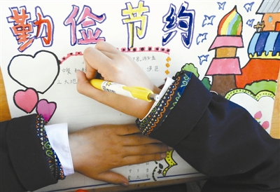10月31日,江苏省连云港市海州实验小学学生在创作勤俭日手抄报。当日是世界勤俭日,各地举办丰富多彩的主题活动,引导孩子们从小养成勤俭节约的好习惯。 新华社发(耿玉和 摄)