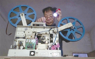 10月30日,曾纪连在家中修理一台老旧的电影放映机。