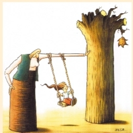 乱砍滥伐树木使得绿色稀缺,环境恶劣,孩子们连挂秋千的地方都无法寻觅。妈妈只能伸出纤弱的臂膀为娃娃排忧解难。唉!【土耳其】艾伦善