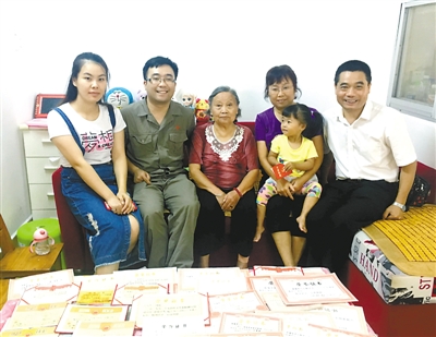 如今,韦玉兰的听力大不如前,无法单独接受采访。汤龙波用车将她载到10分钟车程外的父母家——柳钢的另一职工住宅小区“怡园新苑”。刚一进门,看见祖孙三代获得的各种奖状和证书摊开在茶几上,韦玉兰的眼睛亮了。