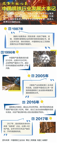 1978年12月,党的十一届三中全会的召开,成为我国钢铁工业改革开放和发展的新起点。宝钢、天津钢管等大型现代化钢铁企业的建立和一批老企业的挖潜改造,让我国钢产量以每年400 万到500万吨的速度增长。