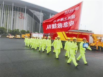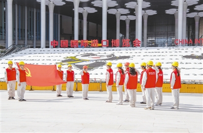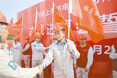 为全面贯彻党中央和上海市委、国家电网公司党组关于举办好进博会的相关工作部署要求,国网上海青浦供电公司党委强化政治引领,统一思想行动,在进博会前线支援保障基地举行决战进博会誓师大会,现场为9支“护航进博会先锋突击队”授旗,号召全体电力保障人员全力以赴、攻坚克难,坚决打赢进博会保电攻坚战。