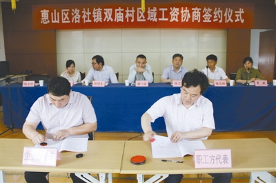 2013年3月江苏无锡惠山区洛社镇举行的区域工资协商签约仪式。