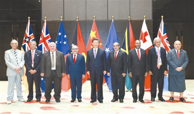 11月16日,国家主席习近平在莫尔兹比港同巴布亚新几内亚总理奥尼尔、密克罗尼西亚联邦总统克里斯琴、萨摩亚总理图伊拉埃帕、瓦努阿图总理萨尔瓦伊、库克群岛总理普纳、汤加首相波希瓦、纽埃总理塔拉吉等建交太平洋岛国领导人以及斐济政府代表、国防部长昆布安博拉举行集体会晤。习近平主持会晤并发表主旨讲话。 新华社记者 庞兴雷 摄