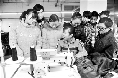 11月17日,工人师傅为学生指导熨烫技术。近年来,湖北省秭归县特殊教育学校把教学课堂搬进企业车间,让学生跟着工人学习技能。