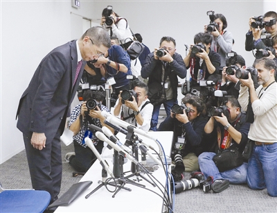 11月19日,日本横滨,日产汽车首席执行官西川广人在新闻发布会上道歉。