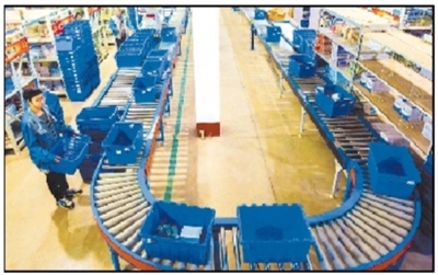 11月23日,衡水市冀州区一家医药公司的员工在查看药品分拣流水线。