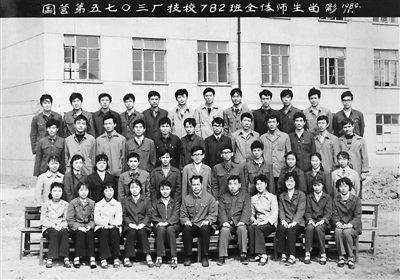 1980年,胡双钱(第三排左五)在上海飞机制造厂技校的毕业留影。