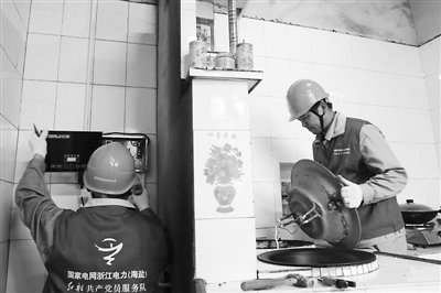 国网海盐县供电公司红船共产党员服务队队员为文溪坞村民安装“电灶头”