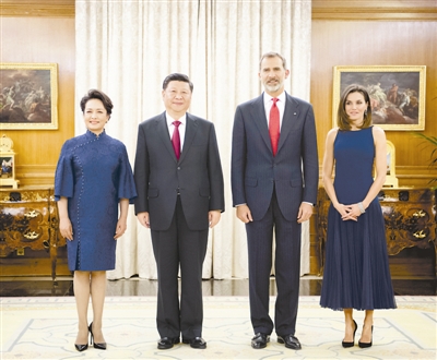 习近平表示,很高兴应费利佩六世国王邀请到访美丽的西班牙。2005年中西建立全面战略伙伴关系以来,两国关系水平不断提升,政治互信日益增强,合作领域不断拓展,民间交往更加密切。中西关系正处在历史最好时期。我对中西关系发展前景充满信心。这次访问西班牙是我连任中国国家主席后首次访问欧洲,也是这次欧洲拉美之行第一站,希望通过此访巩固两国友谊,提升合作水平,使中西关系行稳致远。