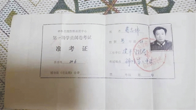 1987年,葛志伟参加中华全国律师函授中心第一期学员闭卷考试的准考证。 受访者供图