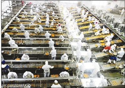 12月2日,湖北省秭归县一家脐橙深加工企业的工人在生产线上忙碌。入冬以来,“脐橙之乡”湖北省秭归县的脐橙深加工企业进入生产忙碌期。新华社发 (王辉富 摄)