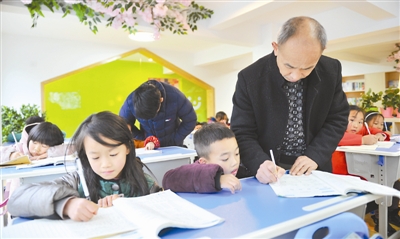 12月5日,在宣恩县高罗镇易地扶贫搬迁安置点歌乐社区的“四点半学堂”内,社区工作人员在辅导孩子们做作业。