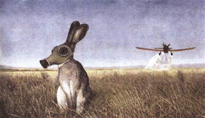 滥施农药给生态和坏境带来种种麻烦,人类受害首当其冲。看,动物们也遭受“株连”,兔子竟戴上防毒面罩,我们怎么办?