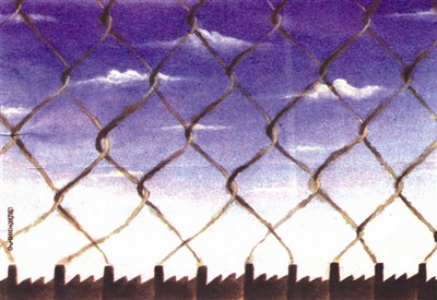 在烟囱林立的土地上,重重黑“雾”编织着“罗网”,紧紧锁住清澈的蓝天白云,“霾”成了人类大害。人啊,人!切莫再作茧自缚!