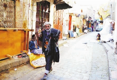 12月17日,在也门首都萨那,一名男子走过一个摊位。也门政府17日晚发布命令,要求政府军自18日起在荷台达实施停火。 新华社发 (穆罕默德 摄)