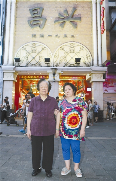 9月8日,在广州越秀区北京路步行街上,85岁的吴银花(图左)老人和自己65岁的女儿陈苏莲在自家店铺门前留影。1952年,她和丈夫在广州开了家制衣店。改革开放后,他们在1979年7月1日带头领取了广州首批个体户牌照,1988年获颁广州第一个私人企业营业执照,号码是穗私V1副字0001号。目前,该门店由34岁的孙子陈识多打理,但两位老人会经常到店里坐一坐、搭把手。截至2017年底,我国个体工商户超过了6500万户,民营经济撑起了我国的半壁江山。