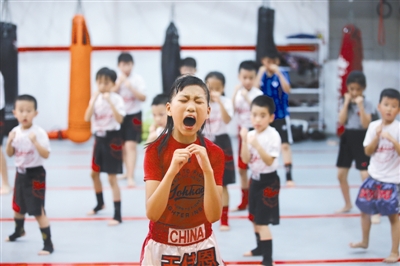 8月1日晚上,江苏昆山,10岁的王佳恩带领小伙伴一起训练。王佳恩5岁接触拳击,从开始的好玩,到增加强度后心生抗拒,再到坚持不懈拿到多个冠军,她希望有一天能站到最高领奖台,成为一名世界级的女拳王。