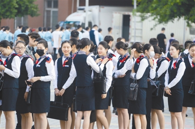 5月7日早晨,四川成都,唐婷婷和同学们列队上空乘专业的早课。10年前的5·12汶川大地震发生后,失去父亲、母亲又重伤,她被送到安康家园。如今,唐婷婷已成长为一名大学生,她希望毕业后能当空姐。