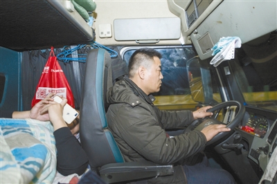 1月17日夜,货车司机马小刚全神贯注开车,儿子在后排轮换休息。他们从成都传化公路港出发,昼夜兼程前往1700多公里外的广州。马小刚和他儿子长年以货车为家,是我国目前约1900万货车司机中普通的一对父子。