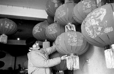 12月23日,在石家庄市藁城区屯头村,一家宫灯商户在展示制作好的宫灯。 随着元旦临近,屯头村宫灯生产厂家加班加点赶制灯笼供应节日市场。