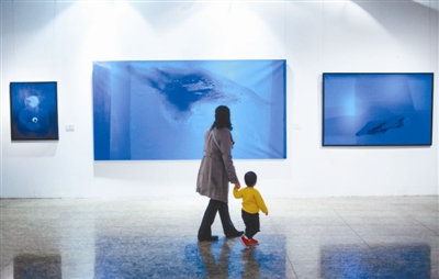 近日,“视域之外”意大利当代艺术展在北京中华世纪坛艺术馆开幕,现场共展出25位意大利当代艺术家的50件作品。据了解,此次展览以“视域之外”为主题,旨在探讨艺术家们在艺术创作之外的跨文化意义,让观众对意大利的当代艺术面貌有一个全新的认识。图为观众正在观看展览作品。
