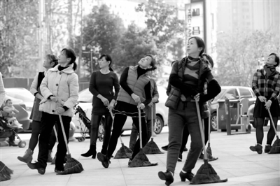 保洁员跳起“扫帚舞”