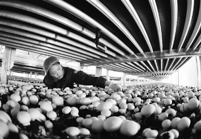 12月23日,江苏省连云港市灌南县一个菌菇生产车间,工人正在采摘成熟的双孢菇。近年来,灌南县把食用菌产业作为深化农业结构调整、发展现代农业的主导产业,按照“基地化、工厂化、品牌化、科技化”的发展战略,引导食用菌企业加大新品种、新技术推广力度,通过“公司+基地+农户”“公司+农户”等形式,强力打造食用菌产业集群,带动整个产业规模化发展,鲜菇年产量达58万吨,实现产值50亿元,带动当地农民增收致富。耿玉和 摄/中新社