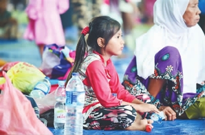 12月25日,一名女孩在印度尼西亚万丹省板底兰县的灾民安置点休息。 新华社记者 杜宇 摄