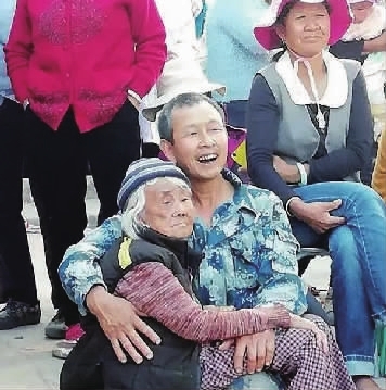 曾经,年幼的儿子在母亲的怀里慢慢长大;如今,母亲已有白发,儿子已成壮年。两人换了个位置,但彼此的温暖依旧。 (周有强)