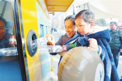 1月2日,青岛同德路社区居民在使用人工智能垃圾分类机。