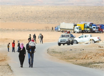 题图:2018年12月24日,在叙利亚大马士革以北的叙黎边境附近,难民从黎巴嫩返回叙利亚。