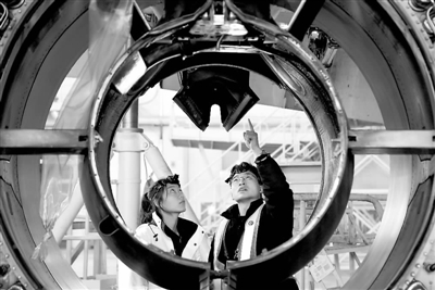 1月4日,在东航技术甘肃分公司机库,师傅杨杰男给杨佳郁(左)讲解飞机发动机舱构造。1995年出生的杨佳郁,2018年大学毕业后,进入东航技术甘肃分公司飞机定检维修一车间工作,成为一名飞机维修师。单位给杨佳郁指派了一位师傅——组长杨杰男。杨杰男对这位徒弟倾囊相授,在进行一些精密仪器的检修工作时,手把手地教授操作。