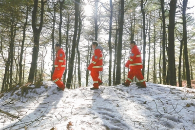 1月3日,张建、张忠、张华在拱拢坪林场护林巡山。
