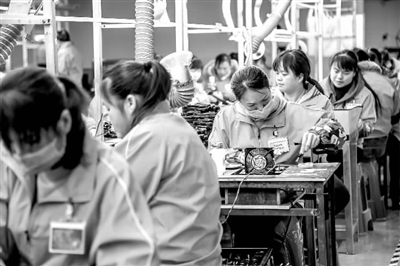 1月8日,广西河池市东兰县一车间内,女职工们正在加工电子产品。该县引进电子科技企业,将生产车间设在扶贫移民家园小区内,方便贫困户群众就业。陈冠言 摄/中新社