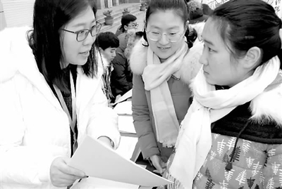 1月12日,应聘人员在招聘会现场进行求职咨询。当日,江苏连云港经济技术开发区劳动保障部门联合该区猴嘴街道举行“新年送岗位”企业用工招聘会,提供了3000个就业岗位,吸引了众多求职者。 朱先明 王红岩 摄