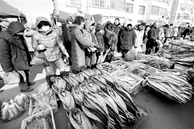 1月15日,市民在山东青岛沙子口年货大集上选购海鲜。春节临近,各地商贸、年货集市日渐火爆,年味越来越浓。