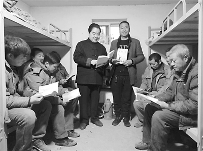1月14日,农民工出身的刘迅甫来到北京市通州区某工地,向农民工赠送诗集并朗诵自己写的诗。刘迅甫是从农民工一路走来的诗歌和书法家,为讴歌农民工为国家建设所做出的贡献,他创作了系列诗集《农民工之歌》。每到春节来临之际,刘迅甫总是不忘初心,除了坚持到建筑工地为农民工送诗读诗,还到村里为农民兄弟书写春联。