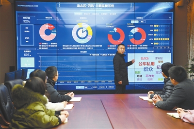 1月15日,重庆市渝北区纪委监委工作人员利用“四风”问题监督系统进行线索分析。近年来,重庆市渝北区结合信息化和大数据应用实际,运用科技手段打造监督大数据平台,推进“智慧监督”,提升监督执纪水平,取得良好效果。 新华社记者 王全超 摄