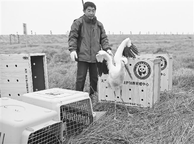 当日,江西省野生动植物救护繁育中心、天津市野生动物救护驯养繁殖中心在江西鄱阳湖国家级自然保护区将16只被救治的珍稀候鸟成功放飞。其中1只东方白鹳为国家一级保护动物,2只大天鹅、3只鸳鸯为国家二级保护动物。新华社记者 万象 摄