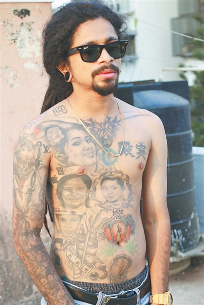 据外媒近日报道,来自印度孟买的27岁小哥杰森·乔治从头到脚共有521个文身,有望刷新世界纪录。从小时候拥有了第一辆玩具汽车起,他就开始在身上留下各种刺青,包括玩具车logo、手机、学校、最喜欢的报纸、电视频道、照相机,还有父母、女朋友和好兄弟的肖像。 东方IC 供图