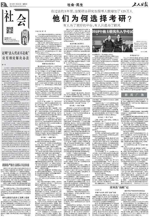 工人日报 2019年01月20日 星期一