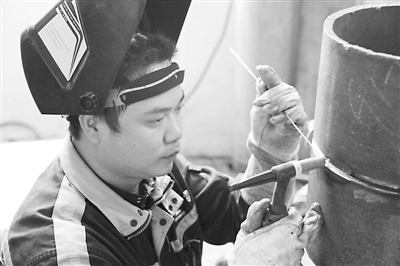 身着蓝色帆布料工装,头戴电焊防护面罩,一手拿焊条、一手拿焊枪……初见胡元海,看起来与其他焊工也没什么不同。但是,当这位平凡得似乎走进人群就会被淹没的80后小伙儿举起手中的焊枪,便是另一番景象。